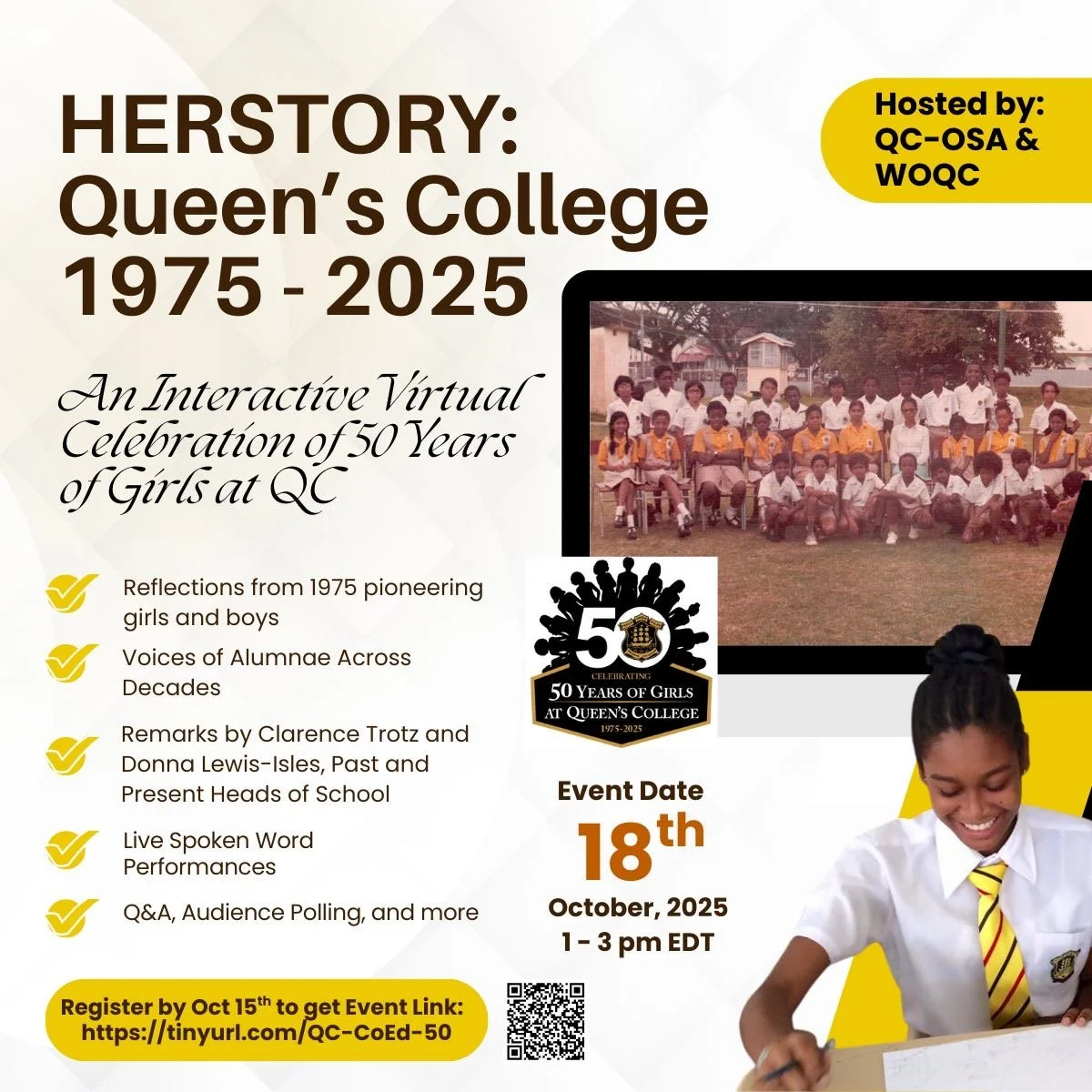QC 50th Anniversary of Girls Countdown 00 Days 00 Hours 00 Minutes 00 Seconds 10/18/2025 QC Guyana Special Assembly Attend the online panel discussion Learn more Tickets Sponsorship Packages